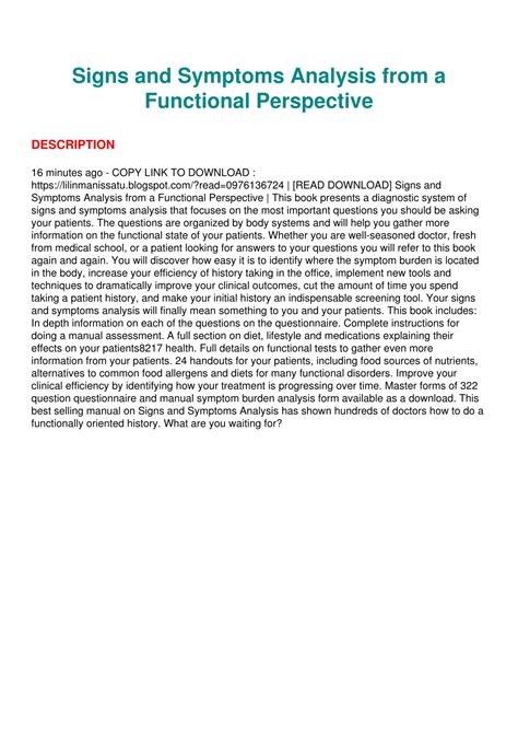 Read Online Signs and Symptoms Analysis from a Functional Perspective rtf Open Library